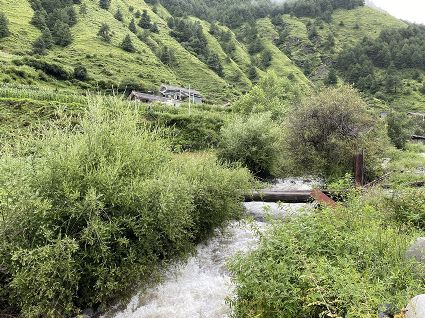 六匹馬,馱著我們,還有我們的行李丁丁當(dāng)當(dāng)走向立乃村后的大山腳下,走進(jìn)蜿蜒崎嶇的峽谷,周遭大山嵯峨。谷中一道河水清冽淌出,水底的黑白石子在透明的水波下顫動(dòng)著。河兩岸長(zhǎng)滿(mǎn)了成片濃密的鳶尾,因?yàn)楹?,花朵稀疏。幾棵又幾棵開(kāi)滿(mǎn)白色碎花的竇潔子樹(shù)臨水生長(zhǎng),初秋時(shí)節(jié),樹(shù)上就會(huì)結(jié)滿(mǎn)色澤美麗的紫色小漿果,引來(lái)林間的鳥(niǎo)雀啄食,牧人遇見(jiàn)了也去歡喜地摘來(lái)吃。馬匹不時(shí)去渡過(guò)一座搭建在河水上的簡(jiǎn)易木橋,接著就會(huì)迎來(lái)一段向上的坡路。越往峽谷深處,鳶尾花就越發(fā)稀少了,我們開(kāi)始朝著山道攀行。 南杰騎在最前面的一匹馬上引路,雍貝騎在她身后的那匹馬上,她偶爾回頭看看雍貝和雍貝之后的我一眼,目光又回落到雍貝臉上,內(nèi)心升起喜歡,面目就顯出安適和坦然。吉美騎在最后一匹馬上看守我身后那兩匹馱著行李的馬,怕它們丟失了東西。馬背上的雍貝,沒(méi)有顯出新奇或是驚慌,就只那樣的穩(wěn)重騎行,仿佛生來(lái)就是一位騎手。