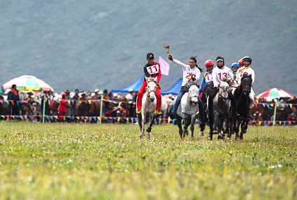 8月6日至8日,2020四川甘孜山地文化旅游節(jié)系列活動之一的色達金馬文化節(jié)在色達縣扎青塘草原舉辦。當?shù)厝罕娚碇?jié)日盛裝載歌載舞、歡聚一堂,文藝表演、賽馬、傳統(tǒng)藏族民俗體育比賽、傳統(tǒng)服飾表演、民間藝術和非遺展演等活動精彩紛呈。