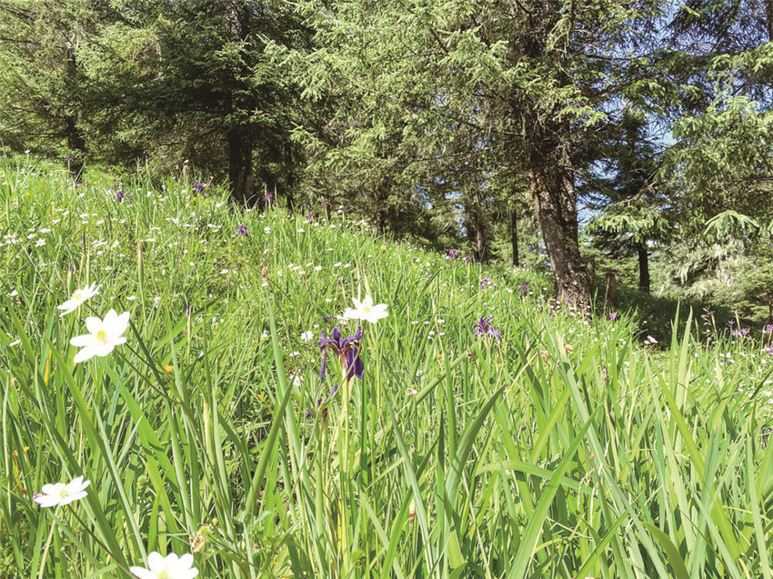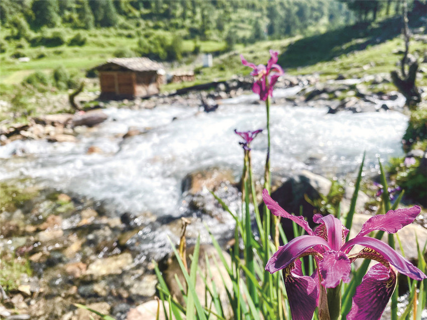 女人們相約去后山林中撿野生菌。一位穿氆氌袍子的老牧人領(lǐng)著小孫女,還有一只勇猛地藏獒,在石屋后方的草坪上等太陽。微風(fēng)輕拂著他們腳邊盛開的鳶尾花,細聽,那鈴鐺般的花朵搖響嘶嘶桑桑的音樂。小女孩在花叢中那條伸向牧場的小路上撿拾白色的小石子,裝入衣包里,鼓脹后就取出一枚枚投向花叢中的黑蝴蝶,令它的世界撲朔迷離。老牧人瞇縫著眼睛,翻轉(zhuǎn)粗糙的手心手背,仿佛要使它也開出鳶尾花朵來。我朝他們走去,小女孩朝我跑來,撲進我的懷中喊我阿尺。我撫摸她頭頂上的卷發(fā),像撫摸著一只乖覺的小鹿。