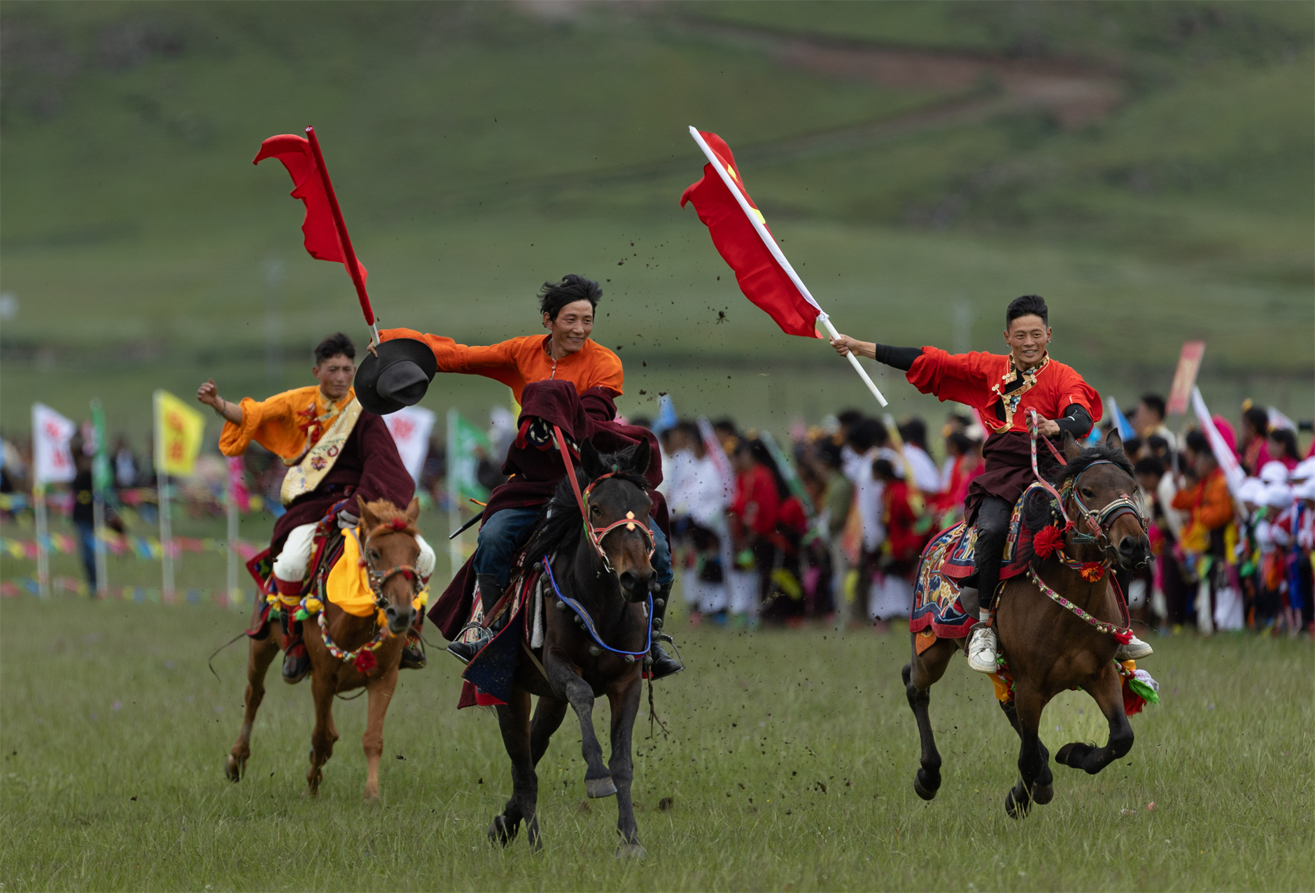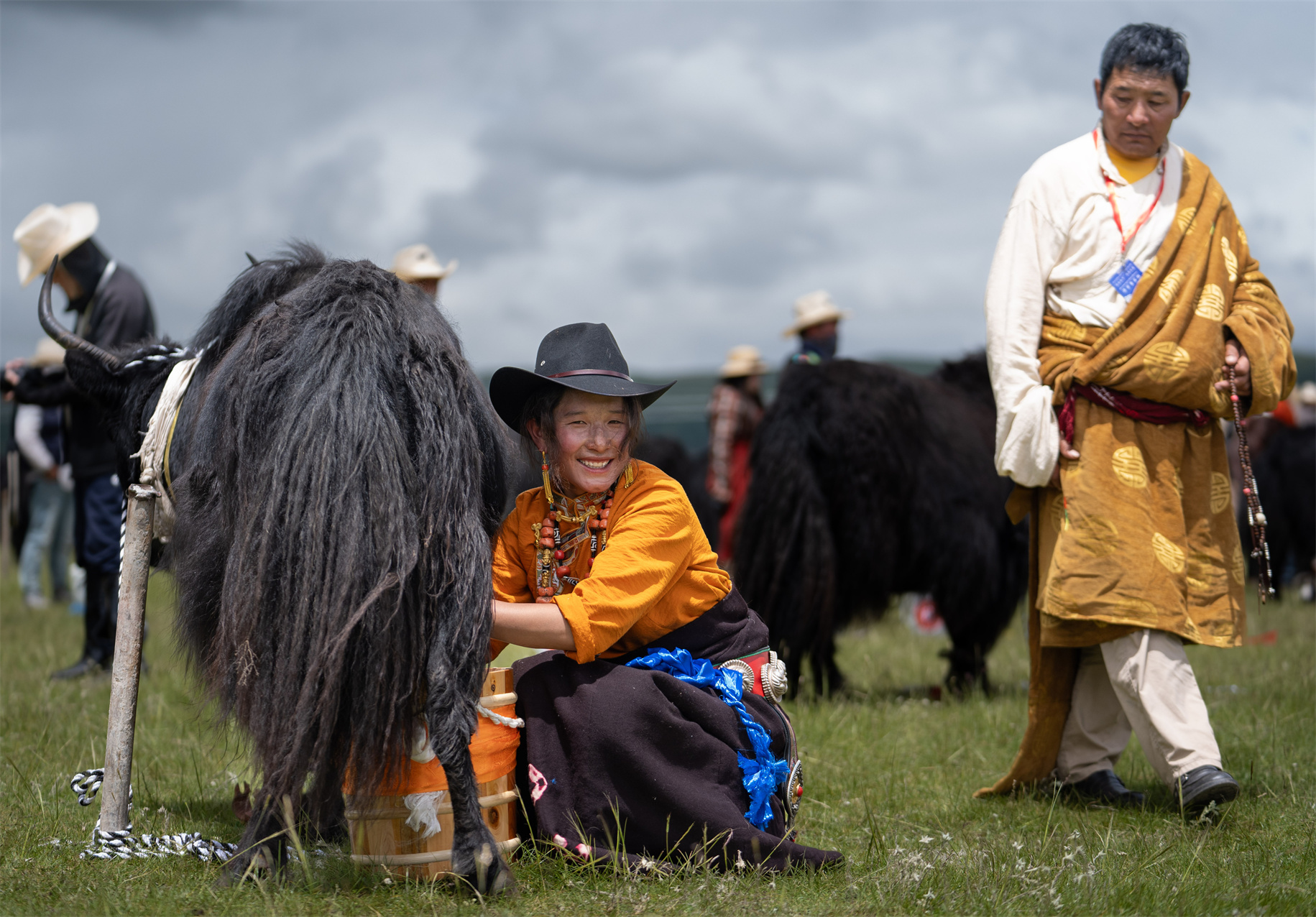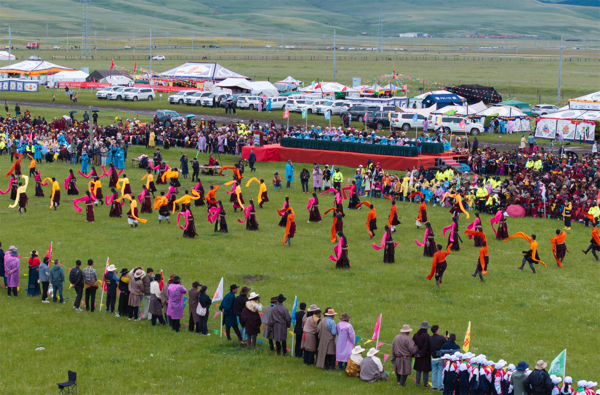 7月27日,四川省甘孜藏族自治州白玉縣第二屆“盛德白玉·草原最?!编l(xiāng)村民俗文化活動(dòng)在阿察鎮(zhèn)日通草原啟幕。文藝匯演、牦牛選美、擠奶比賽、賽馬等活動(dòng)在接下來(lái)兩天里將輪番上演,吸引當(dāng)?shù)啬撩窈捅姸嘤慰颓皝?lái)觀(guān)賞。