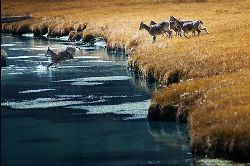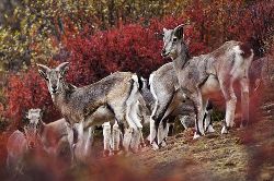巖羊(學(xué)名:Pseudois nayaur),體型中等,形態(tài)介于野山羊與野綿羊之間。兩性具角,雄羊角粗大似牛角,但僅微向下后上方彎曲。以青草和各種灌叢枝葉為食。冬季啃食枯草。它們還常到固定的地點(diǎn)飲水,但到寒冷季節(jié)也可舔食冰雪。無(wú)固定獸徑和棲息場(chǎng)所。它們?cè)趹已虑捅谥灰幸荒_之棱,便能攀登上去。一跳可達(dá)2、3米,若從高處向下更能縱身一躍10多米而不致摔傷。冬季發(fā)情交配,次年6、7月產(chǎn)仔,每年通常只產(chǎn)1仔。主要天敵是雪豹、豺、狼,以及禿鷲和金雕等大型猛禽。中國(guó)國(guó)家二級(jí)重點(diǎn)保護(hù)野生動(dòng)物?! ?br />     巖羊分布于西藏、青海、新疆、甘肅、四川西部等地,還向東北延伸分布至黃土高原。目前,其廣大分布區(qū)的環(huán)境仍處于相對(duì)原生狀態(tài),資源儲(chǔ)量頗為可觀(guān),是很有開(kāi)發(fā)前景的動(dòng)物種類(lèi)之一。