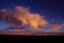 云在天上飄動,影子在大地上掠過,碧綠的草地在云流的映襯下五彩斑斕,猶如一塊巨大的迷彩布,把草地打扮得分外妖嬈。云不墨守成規(guī),每時每刻都有新創(chuàng)意;云有層次的美,有型有款。時刻花樣百出、千奇萬巧的云景,常使人遐想聯(lián)翩。我愛高原的云,因為亦真亦幻的云仿佛成了心靈遠(yuǎn)游的載體,寄托著人們的留戀與追求。