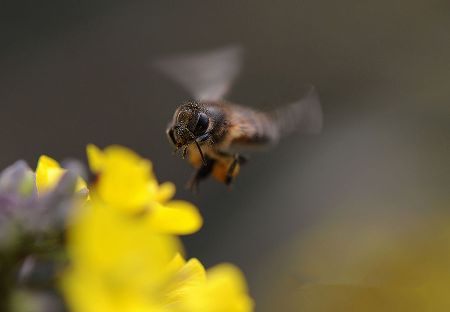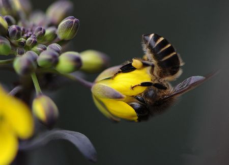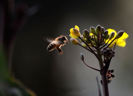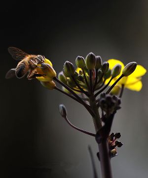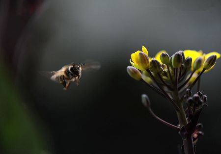 千百年來,許多小宗蔬菜的傳宗接代依靠中華蜜蜂授粉。紫油菜花在初春開放,這個季節(jié)西方蜜蜂因畏寒仍在巢中被人工飼養(yǎng),只有中華蜜蜂不怕寒冷,不嫌花源稀少,只要氣溫達到8℃,它們就出勤了。  熊小立圖文   攝于成都