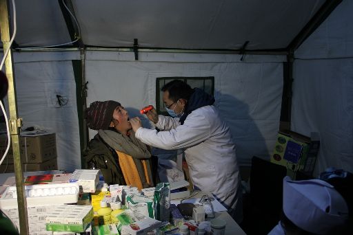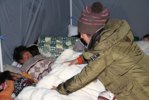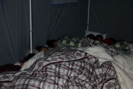 處于震中的塔公鄉(xiāng)祖慶小學(xué)在康定6.3級地震中受損嚴重,學(xué)校師生搬進了救災(zāi)帳篷。地震后,校長德吉擁忠一直忙于安頓孩子們,自己病了也沒時間去衛(wèi)生所,導(dǎo)致眼圈紅腫,聲音嘶啞。23日晚十一時,帶病校長拿著一支不太亮的手電到孩子們的帳篷去查夜。記者用鏡頭記錄下這一過程。