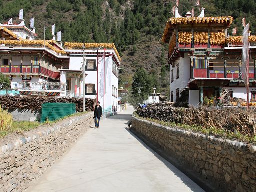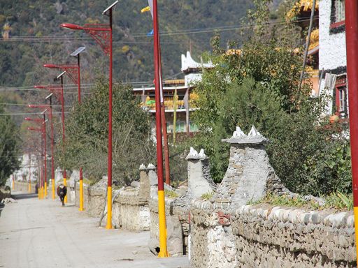 走進冬日的丹巴縣革什扎鄉(xiāng)三道橋村,一幅如詩如畫的鄉(xiāng)村美景映入眼簾:一排排新穎別致而獨具嘉絨特色的白色藏房鑲嵌在彎彎的革什扎河旁,格外耀眼。一條條平直寬敞的硬化路像一根根潔白的哈達連接家家戶戶,寬敞平坦的公路上,轎車、農(nóng)用車、拖拉機穿梭來往,別具一格的村民活動中心紅旗迎風(fēng)飄揚。 這是如今的三道橋民族團結(jié)新村。