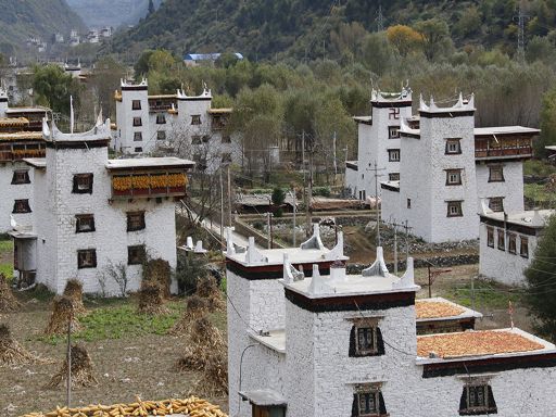 丹巴新村獨具特色的藏房上金燦燦的玉米特別誘人。
