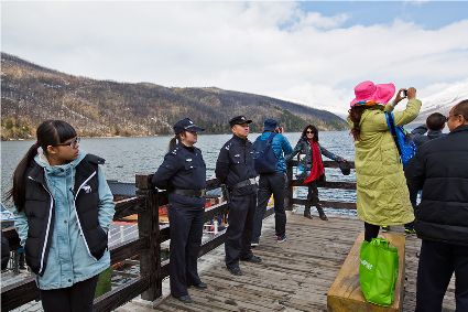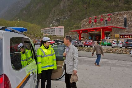 “五一”小長假期間,在康定各景點隨處可見公安民警、武警執(zhí)勤巡邏的身影,他們用熱情、規(guī)范、文明的行動,為游客提供公安便民服務(wù),救助有困難的游客,指揮疏導(dǎo)車輛,保證道路交通安全,打擊欺客、騙客等違法行為,確實保護(hù)游客的合法利益。 (康定市公安局 劉鴻 攝影報道)