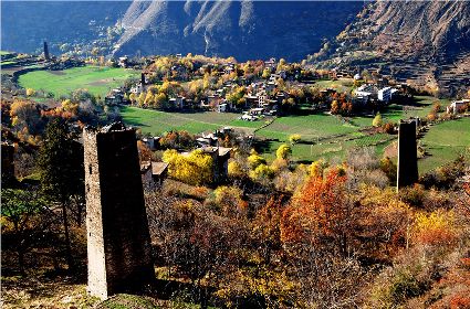 丹巴的秋是云霧繚繞的季節(jié),那秋就附著在白色的霧團上,晃晃悠悠的在丹巴這塊土地上長久的游弋,仿佛不舍得離開這塊充滿美麗色彩的世界似的,山泉更加的清澈,霧氣也仿佛更加的稠密起來。在黃色紅色的樹葉叢中白色的霧氣慢慢地升起,起初一縷一縷,后來慢慢地聚攏來,覆蓋住山鄉(xiāng)間秋日的凄涼,在山坡后向上升騰,來到山巔,又從犬牙交錯的山峰間穿過,往山間傾瀉而下,就像白色的瀑布,慢吞吞的灌滿整個山谷,真有飛流直下三千尺的壯美景色。白色的霧就這樣翻山越嶺跨過溝谷,雖然它沒有云海的波瀾壯闊,也沒有風起云涌的豪邁,然而這高山流云已經(jīng)將丹巴的優(yōu)美、溫柔和壯麗在一瞬間定格成為永恒,覆蓋了你的眼球,沾濕了你的眉毛,滋潤了你的嘴唇,涼透了你的肌膚。