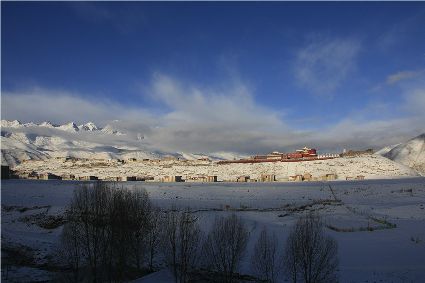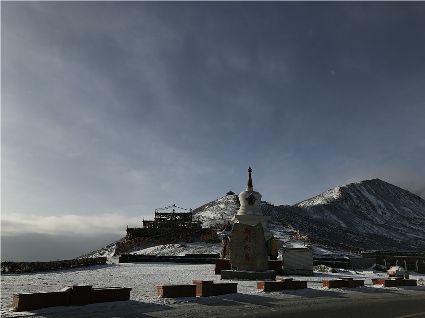 記得,離開甘孜縣城,前往滿金寺的那個早晨。同行的幾個人早早用過了早飯,趁著出發(fā)前僅有的一點時間,站在頂樓視野開闊的餐廳里,盼著太陽沖出來,直接把陽光大把大把地扔在大雪所覆蓋的一切事物上。天公作美,出發(fā)之前,太陽慷慨了一回。于是,一陣噼噼啪啪的快門聲響了起來,應(yīng)和著寥寥餐廳里的某種空白。