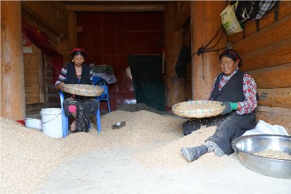 在甘孜縣仁果鄉(xiāng)的仁果下村,當(dāng)大家走進(jìn)村民恩珠澤仁家開滿了各色鮮花的院落時,都不約而同的發(fā)出了贊嘆之聲,這是恩珠澤仁在當(dāng)?shù)厍皝碓氐牡谝粫浀闹С窒拢k起的一家正準(zhǔn)備開張接待游客的民居接待點,他告訴我們說,他真心的相信,甘孜的格薩爾機(jī)場通航后,這里就一定是他奔向小康的起點,從這里開始,他對未來充滿了信心。