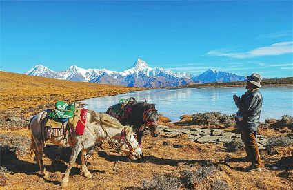 貢嘎主峰的壯麗風(fēng)姿倒映在冰湖上。