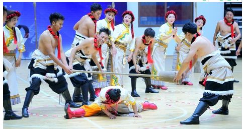 區(qū)別于傳統(tǒng)的民族舞蹈表演,在運動會中的表演項目,需含有競技成分,以把具有民族特色的運動保留下來為己任??靵砀S記者的鏡頭,回到9月3日康定民族體育館的賽場上,看看運動健兒們的表現(xiàn)吧。特別提醒,9月4日晚8時,最后一場表演項目比賽將在康定民族體育館上演,敬請速來圍觀。