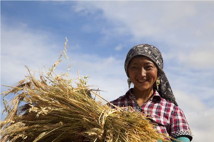 聯(lián)合收割機(jī)已在高原大地施展威力。那些平坦的大地里,拖拉機(jī)的穿梭,收割機(jī)的鳴唱,耳聞目睹,隨外可見。在山地間,大型機(jī)械無法進(jìn)入的地方,原始的勞作仍沒失去它本身的價(jià)值。“汗滴禾下土,粒粒皆辛苦”的場(chǎng)面仍然存在……農(nóng)人的歡歌喜語(yǔ)浸漫于天地間,豐收的喜悅早把辛勤的勞作沖淡。