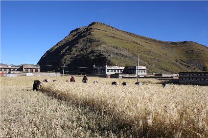 國(guó)慶期間,在稻城縣傍河鄉(xiāng)和省母鄉(xiāng),沉甸甸的青稞穗隨風(fēng)起伏、頻頻頷首,把喜悅之情傳給這塊土地的主人。
