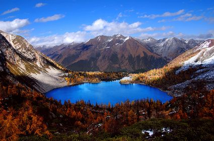 秋天是黨嶺最好的時節(jié),恍若一幅鑲嵌于橫斷山系中的絕妙油畫,雄奇壯美的雪峰、星羅棋布的高山湖泊,熱熱乎乎的露天溫泉、色彩繽紛的原始森林,緩緩流淌的清溪、厚重似毯的高山草甸,以及淳樸的嘉絨藏族風(fēng)情,所有的景色匯于一地。