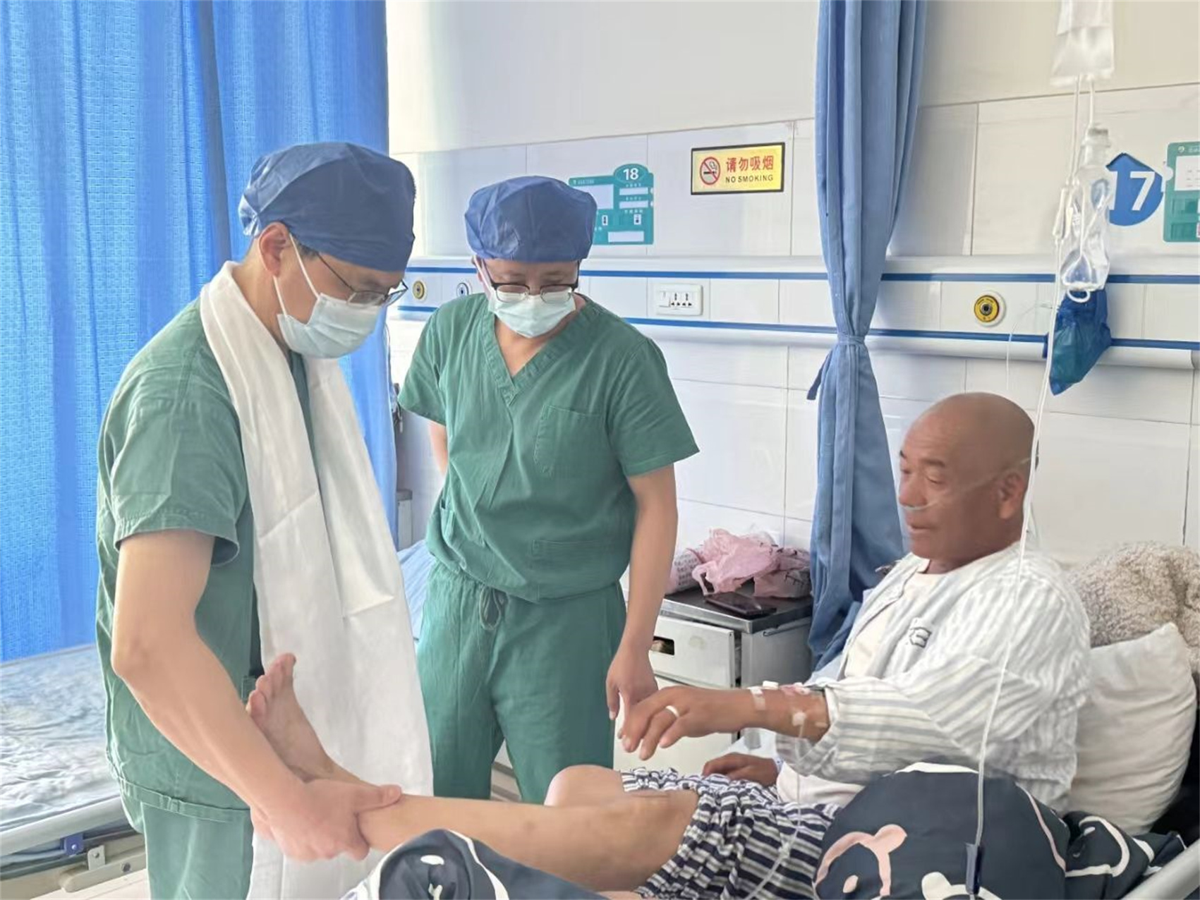 病房里和李秀文同樣幸運(yùn)的還有60歲的拉空登巴大叔,登巴大叔被膝關(guān)節(jié)疼痛困擾多年,雙腿膝關(guān)節(jié)變形,上下樓梯時(shí)痛感會(huì)更加明顯。當(dāng)天一大早,登巴大叔就從家里趕到縣醫(yī)院,做術(shù)前準(zhǔn)備?!昂荛_心,我滿足了手術(shù)條件,希望手術(shù)順順利利!”登巴大叔激動(dòng)地說(shuō)。
