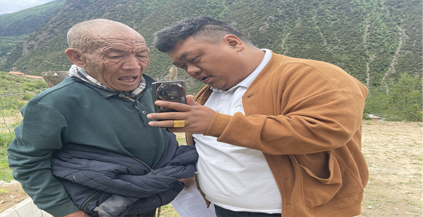 本網(wǎng)訊 “阿克,德姆額應(yīng),今天來(lái)看看您,順便幫您做養(yǎng)老保險(xiǎn)認(rèn)證!”活動(dòng)中,白玉縣熱加鄉(xiāng)勒沙村第一書(shū)記一邊拿著手機(jī),耐心幫老人完成養(yǎng)老保險(xiǎn)資格認(rèn)證,一邊與老人親切交談,詢問(wèn)老人近期身體狀況,叮囑老人保重身體,有需要幫助及時(shí)電話聯(lián)系。