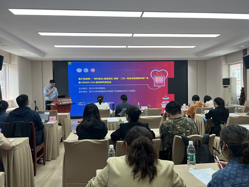 本網(wǎng)訊 7月1日,由四川大學(xué)華西醫(yī)院主辦、四川大學(xué)華西醫(yī)院甘孜醫(yī)院承辦的基于互聯(lián)網(wǎng)+“專(zhuān)科醫(yī)生/基層醫(yī)生——患者”二對(duì)一高血壓管理模式推廣會(huì)暨OMAN-trial臨床研究啟動(dòng)會(huì)在康定舉行,來(lái)自四川大學(xué)華西醫(yī)院的專(zhuān)家們以學(xué)術(shù)講座與探討的形式,圍繞高血壓管理新模式和OMAN-trial臨床研究等相關(guān)內(nèi)容進(jìn)行詳細(xì)深入的探討,為廣大醫(yī)師帶來(lái)了一場(chǎng)豐富精彩的學(xué)術(shù)盛宴。