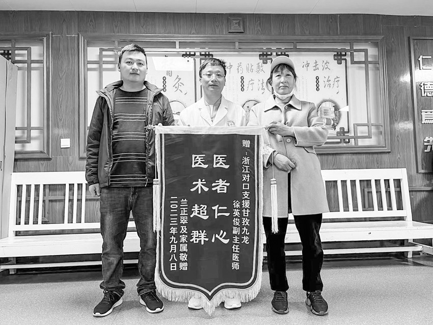 本網(wǎng)訊 “一面錦旗不足以代表我們?nèi)业母兄x,感謝您把我的頑疾解決了,現(xiàn)在生活恢復(fù)了正常!”近日,家住九龍縣魁多鎮(zhèn)的蘭大姐專程來到九龍縣人民醫(yī)院,將一面“醫(yī)者仁心 醫(yī)術(shù)超群”的錦旗送到杭州對(duì)口支援醫(yī)師徐英俊的手中。