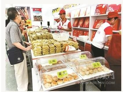 北京稻香村面點(diǎn)師現(xiàn)場(chǎng)烘烤月餅受到歡迎。
