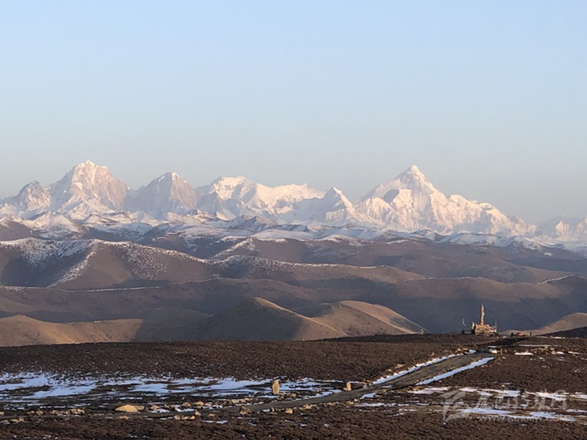 紅日噴薄而出,冰雪洗禮后的魚子西迎著旭日,吐故納新。圖為從魚子西眺望貢嘎雪山。