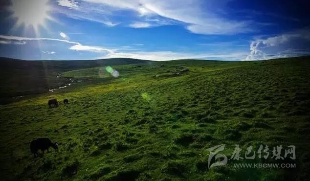 達通瑪大草原位于縣城西北部,天高云淡、空氣清新、陽光明媚。放眼望去,廣闊無垠的大草原恰似藍天下的一塊巨大綠毯。
