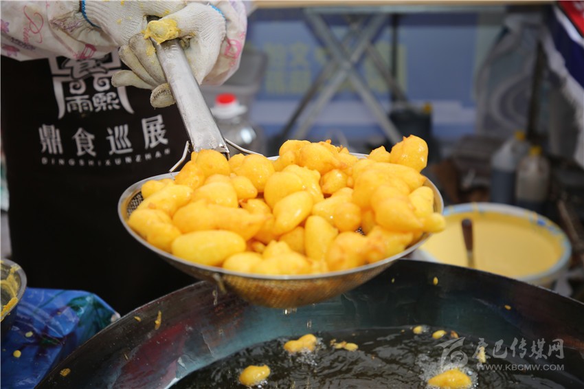 要說美食節(jié)最炫酷的店鋪,那非“印度飛餅”莫屬了。記者穿過層層圍觀的人群,點(diǎn)了一份菠蘿飛餅。只見廚師將捏好的面團(tuán)在案板上揉了幾下,便捏緊面餅一端按順時(shí)針方向轉(zhuǎn)動,手里的面餅越轉(zhuǎn)越大,越轉(zhuǎn)越薄,幾近透明,接著就是放餡料,稍做煎炸,切割裝盤,短短一分鐘內(nèi),一氣呵成。記者接過盤,咬下一口,“喀嚓”一聲,再一口就吃到了菠蘿的清香,外層淺黃松脆,內(nèi)層綿軟白皙,略帶甜味,好一個(gè)外脆內(nèi)嫩啊!嚼起來層次豐富,一軟一脆,口感對比強(qiáng)烈,嚼過之后,齒頰留芳。當(dāng)脆餅撞上菠蘿的清香,就像在夏天突然掉進(jìn)一個(gè)水池,清爽又驚喜?!案杏X就是一件的藝術(shù)品啊!”如此的驚嘆聲從人群中迸發(fā)出來。