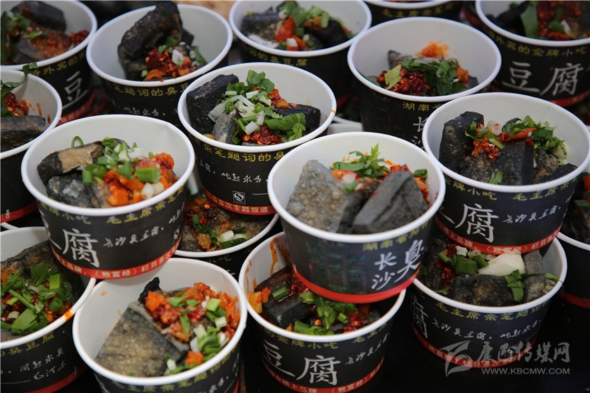“長沙臭豆腐,毛主席親自點(diǎn)評的長沙臭豆腐……”一陣陣吆喝聲從遠(yuǎn)處傳來,記者心想,臭豆腐,大概還是算長沙的味道最正宗吧。還沒走近,一陣逗人味蕾的氣味便傳進(jìn)了記者的鼻子,記者的口水再也包不住了,便徑直跑向臭豆腐售賣點(diǎn),一個(gè)個(gè)臭豆腐堆積如山,正在等待裝盤澆汁。周圍也圍滿了想要一嘗滋味的食客。