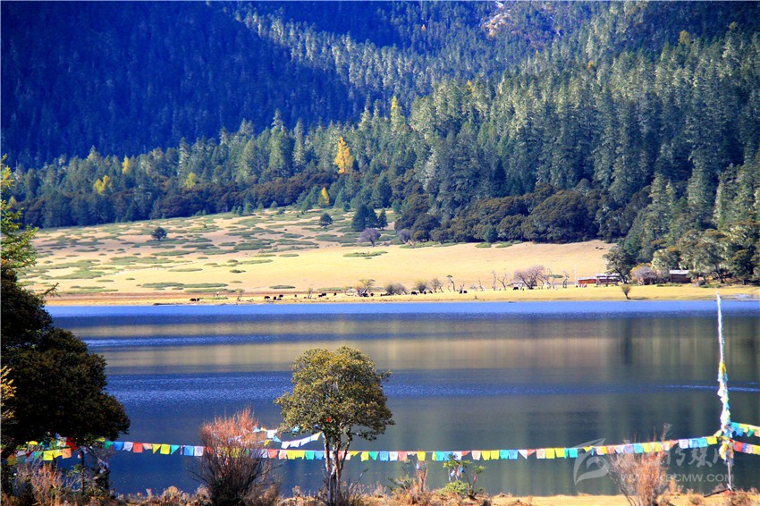 秋季的木格措風(fēng)景區(qū),五彩斑斕的彩林倒映在明麗的湖水中,蒼茫的高山灌叢比夏花還妖艷動人,金燦燦的陽光,深邃的木格措圣湖凸顯著鮮明的自然個性,好像走進(jìn)了五彩繽紛的光影世界。
