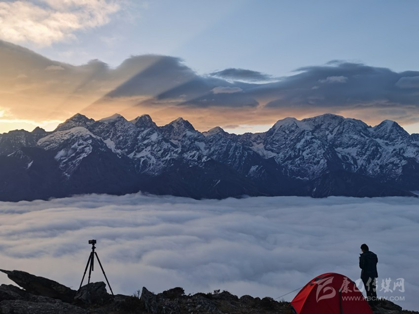 迷魂凼能看見云海的幾率很高,在一眾雪山的包圍里云海翻滾著波濤,好像想掙脫雪山的懷抱奔流向更遠(yuǎn)的地方……