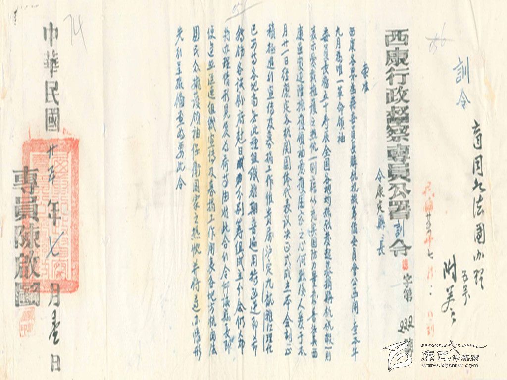 康定縣政府訓(xùn)令:公祭抗日陣亡將士。