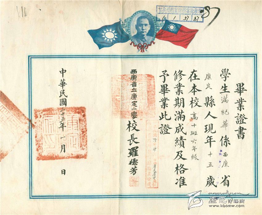 這里的幾份畢業(yè)證書(shū),有由“國(guó)立康定師范學(xué)校”所頒發(fā) 畢業(yè)證,也有由小學(xué)校頒發(fā)的小學(xué)畢業(yè)證。通過(guò)這些畢業(yè)證,讓今天的人們也能感受到在那個(gè)時(shí)期,西康地方的學(xué)校教育十分正規(guī),也就是那個(gè)時(shí)期畢業(yè)的許多學(xué)生,成為了新中國(guó)成立后,建設(shè)社會(huì)主義新藏區(qū)的一支重要力量。