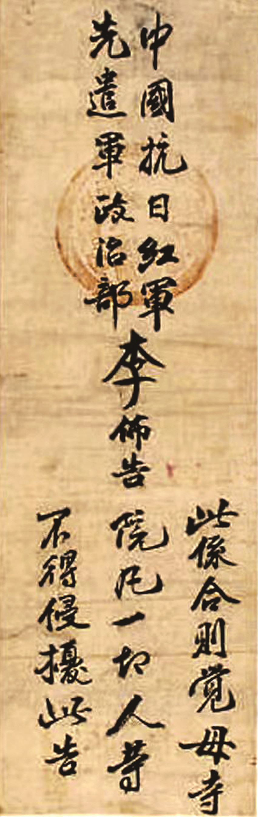 長(zhǎng)征期間,紅軍在沿途書(shū)寫(xiě)、散發(fā)了數(shù)以萬(wàn)計(jì)的標(biāo)語(yǔ)、布告、傳單,這是向沿線民眾宣傳黨和紅軍主張、爭(zhēng)取支持的主要形式,劉伯承親筆書(shū)寫(xiě)的布告是紅軍高級(jí)指揮員在