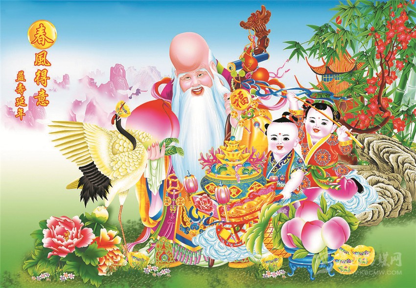 年畫對(duì)人作為一個(gè)特殊物種的感性、感覺(jué)、感官的視覺(jué)包圍,是建立在民居、家庭、居室對(duì)身體的包圍(物理空間)基礎(chǔ)之上的,也是建立在年畫的張貼對(duì)人的精神恐懼的安慰和安撫并使之安寧的精神包圍(文化空間)之中的。這雙重的視覺(jué)包圍還包括了一個(gè)從物質(zhì)和精神的家園,到對(duì)人的出身、成長(zhǎng)、成年、老齡、死亡的人生過(guò)程的全程包圍和看見。