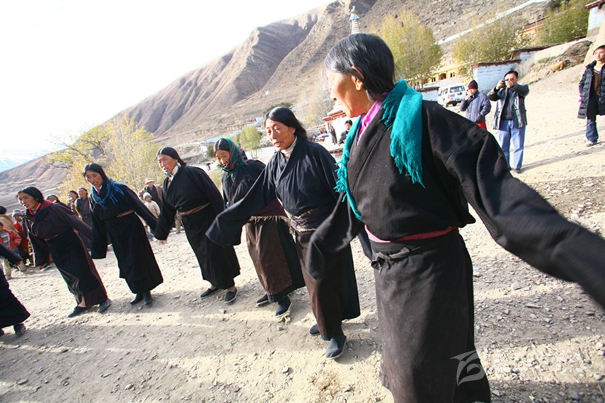 弦子又名為“協(xié)”,在甘孜縣境內(nèi)有孔薩協(xié)欽、仲薩協(xié)、格達(dá)協(xié)、郎扎協(xié)等,其中白利寺五世格達(dá)活佛創(chuàng)建于二十世紀(jì)三、四十年代的格達(dá)弦子尤為著名,跳此舞無(wú)時(shí)間規(guī)定。起初用此歌祭祀亡魂、超度靈魂、免荒災(zāi)。以后逐漸豐富其內(nèi)容而流傳于民間。表演時(shí)無(wú)伴奏樂(lè)器,起舞時(shí),男女兩隊(duì)輪歌共舞,圍成圓圈,相對(duì)而立,男女舞者統(tǒng)一著樸素藏裝,男舞者抬頭,頭戴金氈帽, 身著“氆氌”衣,但不配戴腰刀;女舞者低頭,扎小辮子,身著“氆氌”衣,腳穿藏鞋,沿著弧線,先慢后快,邊歌邊舞,舞蹈的腳步動(dòng)作矯健,帶有“夏卓”的風(fēng)韻。格達(dá)活佛的詩(shī)歌,具有藏族文學(xué)的新內(nèi)容和新思想,每當(dāng)節(jié)日人們就在優(yōu)美的旋律中盡情起舞,格達(dá)弦子的詞、曲均由格達(dá)活佛創(chuàng)作。