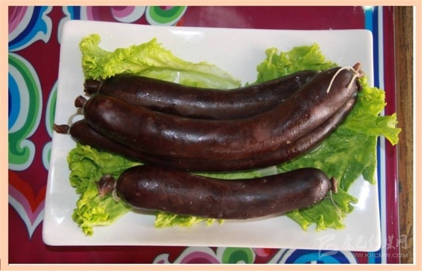 血腸:血腸是將宰殺牲畜的血與玉米面或麥面、蕎面混合在一起,再加以食鹽、花椒面等香料提味,然后將混合物裝進(jìn)洗干凈的牲畜腸里,人鍋煮熟即可。吃的時候,或蒸或烤,蒸則腸衣柔軟很有嚼頭;烤則腸衣香脆可口。因?yàn)檠c不能長時間保存,所以吃血腸的時間一般在宰殺牲畜的幾天內(nèi)。