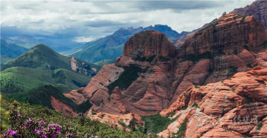 “快看,紅山千年之吻?!币晃挥浾咴隈R背上驚呼。抬頭望去,兩座紅山緊依而立,伴隨藍(lán)天、白云與綠草,構(gòu)成一幅絕妙美景圖;在距丹霞地貌最近的埡口處,大家紛紛下馬觀賞丹霞風(fēng)光。“壯觀震撼、鬼斧神工”,專家學(xué)者無不驚嘆贊絕倫,即便天氣不佳,海拔較高,他們時(shí)而交流討論、時(shí)而拍照留戀,高昂情緒一直持續(xù)。