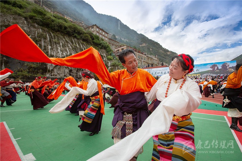 悠悠的牧歌、遼闊的草原、古老的盛裝,寄托著紅龍鄉(xiāng)兒女對盛會的吉祥祈愿和聲聲祝福;瓦多鄉(xiāng)鍋莊隊(duì)那別致的發(fā)飾“日月銀盤”,揮舞的水袖、律動(dòng)的舞步,訴說著古老部落在黨的帶領(lǐng)下攻堅(jiān)克難奔向小康的生動(dòng)故事……