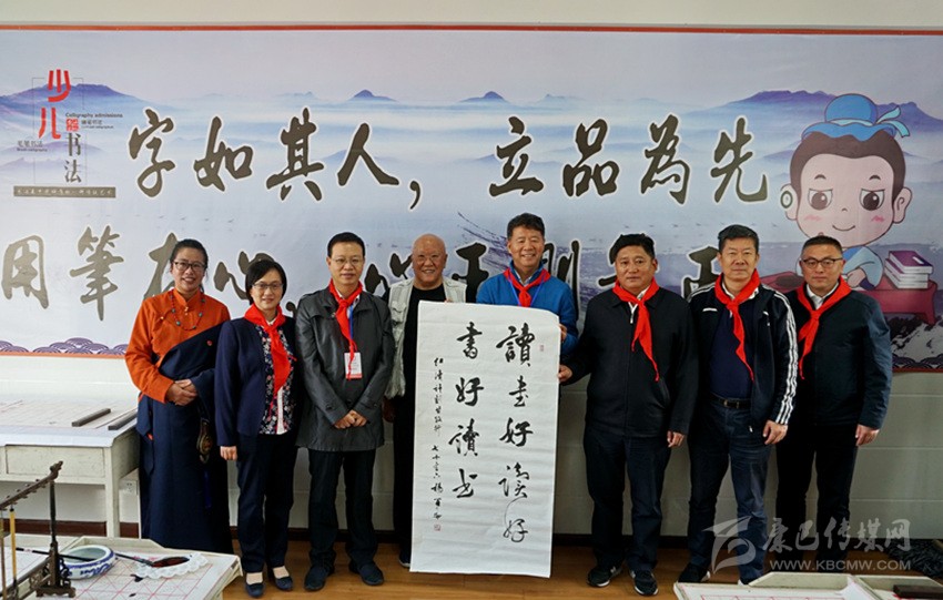 看著“戴上紅領(lǐng)巾,仿佛又童心”的一位位同伴和“求知若渴,流露期盼”的一個(gè)個(gè)孩子,老先生當(dāng)場(chǎng)奮筆疾書,寫下“讀書好、讀好書、好讀書”及“溜溜校園”兩幅字,希望藉此勉勵(lì)甘孜州青少年學(xué)子養(yǎng)成良好的閱讀書寫習(xí)慣,從精品閱讀和書法作品中攫取優(yōu)秀的文化果實(shí),讓濃郁的書香、墨香充盈四川藏區(qū)校園的每一個(gè)角落。
