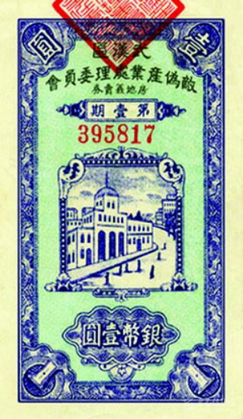 1949年3月,武漢市政府發(fā)行了100萬張彩票,面值都是“銀幣一元”,可以買一張,中獎率是兩萬五千分之一,獎品是位于漢口的別墅。推出彩票“房地義賣券”,以武漢區(qū)敵偽產(chǎn)業(yè)處理委員會名義發(fā)行,票幅高62毫米,闊106毫米,售價為銀幣壹元,計劃發(fā)行100萬枚,計有39幢房屋充作獎品,定于5月10日在漢口當(dāng)眾搖彩。1949年,正是國民黨政權(quán)風(fēng)雨飄搖之時,因此5月10日的搖彩日也就成了彩票發(fā)行組織者的逃命日,六天后武漢解放,那“房地獎”未能兌現(xiàn)。