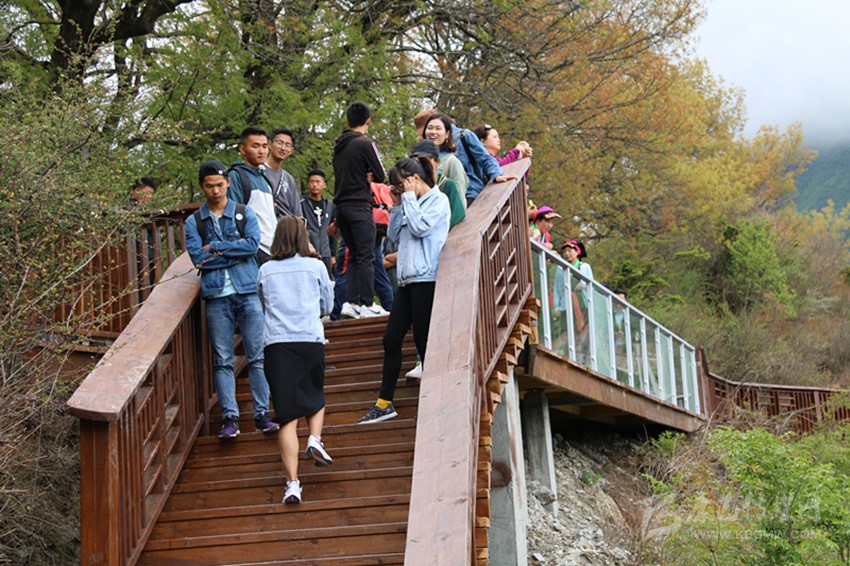 木棧道是休閑圣地又一特色,棧道長(zhǎng)度達(dá)2800余米,猶如長(zhǎng)龍盤(pán)旋,并且棧道全用俄羅斯進(jìn)口的防腐木板鋪制而成,兼具實(shí)用性和美觀性,走在棧道上,清新的木香味撲面而來(lái),順著棧道走到山頂,便能充分欣賞“大渡河第一彎”的氣勢(shì)。