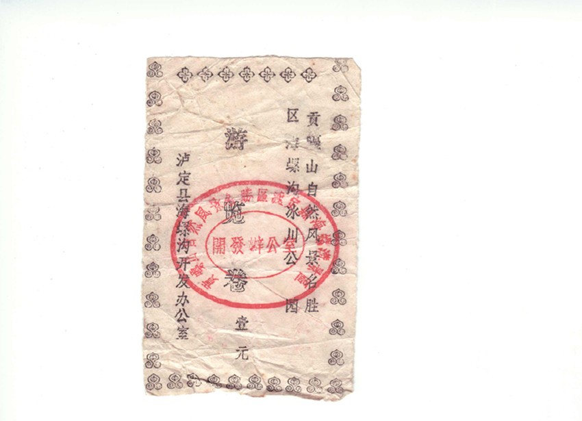 我有心收藏海螺溝旅游開(kāi)發(fā)建設(shè)三十年來(lái)不同時(shí)期、品相各異的門卷、門票數(shù)枚。門卷、門票是游客進(jìn)入景區(qū)的憑證,也是景區(qū)的“臉面”。在我收藏的門卷、門票中有一枚海螺溝景區(qū)第一代門卷。構(gòu)圖簡(jiǎn)單,白底黑字的第一代門卷,雖然在歲月中褪去了鮮色,但在方寸之間卻承載著海螺溝景區(qū)建設(shè)最初的時(shí)光和開(kāi)發(fā)建設(shè)者的記憶,更是瀘定縣三十年前發(fā)展旅游的歷史見(jiàn)證。一晃三十年光陰,至今我對(duì)海螺溝景區(qū)第一代門卷的來(lái)歷,還記憶猶新。