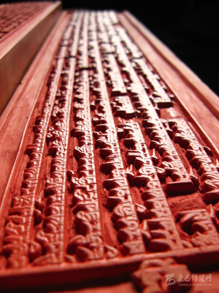公元1730年2月3日,正式在倫珠頂開始進行校對和雕刻工作。為了提高印版的質(zhì)量,土司規(guī)定實行三級審校制度,即書法家們負責對寫好的版文進行兩校,以便及時修改錯漏。然后經(jīng)編審師們復審和終審后,方可交刻工雕刻。刻完后,編審師們在清樣上還要進行三校。版面改動較多的進行重刻,改動較少的進行補刻。規(guī)定的校次不準任意減少或改動。雕刻工作由噶瑪班珠和次白總負責。經(jīng)過60多名書寫員、10名編審師、400余名刻工以及100多名雜工的艱苦勞動,浩繁的《甘珠爾》刻版工程于在公元1734年完成。印版所用經(jīng)費,折成茶塊共計7622包(每包約20公斤)。