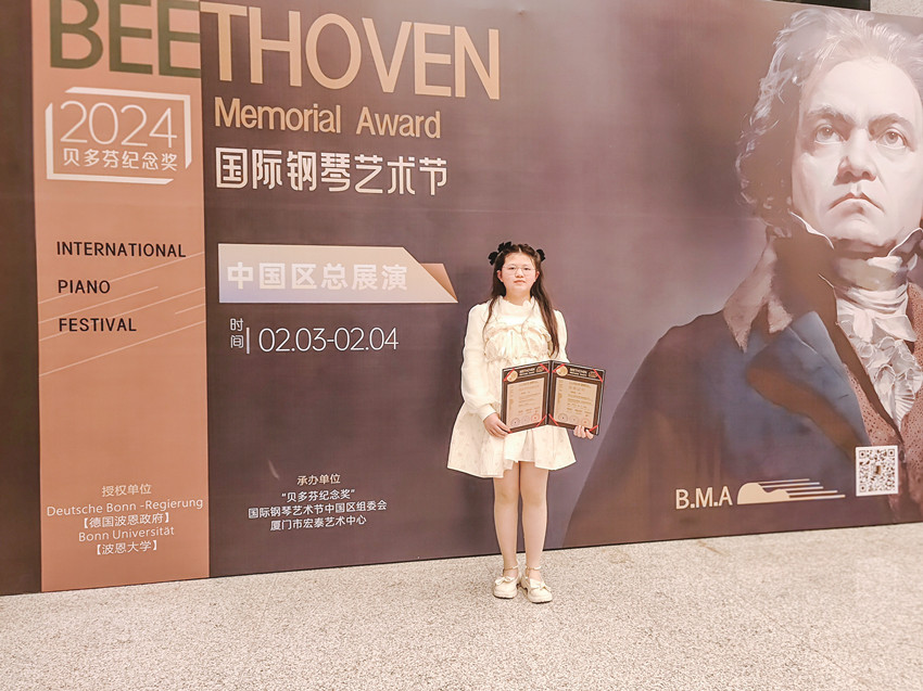 肖欣蕊在貝多芬國際鋼琴展演上獲獎(jiǎng)。 受訪者供圖