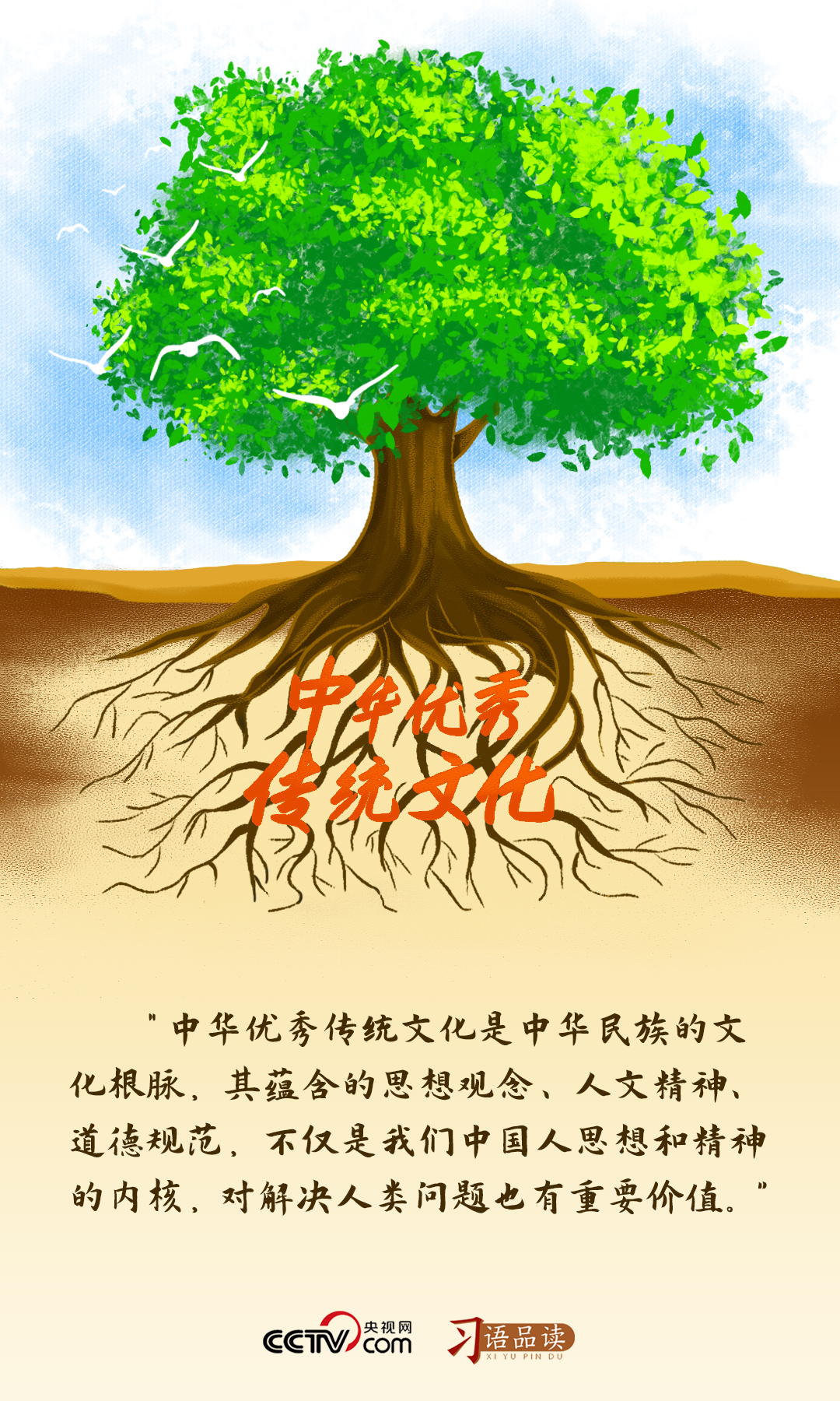 歷經(jīng)五千多年綿延發(fā)展,中華優(yōu)秀傳統(tǒng)文化已經(jīng)形成發(fā)達(dá)的根系。主根向土壤深處延伸,須根從主根上蔓延生出,并與主根緊密相連,展現(xiàn)出突出的統(tǒng)一性。