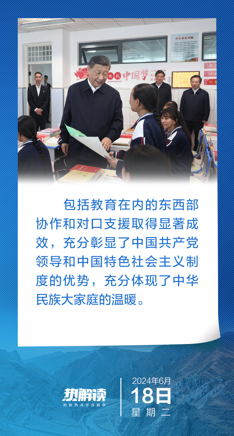 6月18日下午,在青海省考察的習近平總書記,首站來到這所中學看望老師和同學們。他先后走進食堂、宿舍、教室,關心學生們的飲食、住宿、學習……了解當?shù)厣钊胪七M教育工作東西部協(xié)作和對口支援等情況。