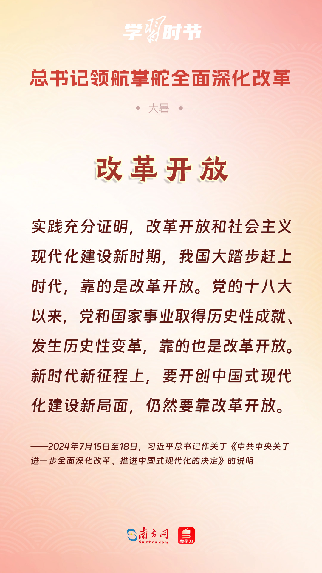 改革重謀劃,更要重落實。黨的二十屆三中全會審議通過的《中共中央關(guān)于進一步全面深化改革、推進中國式現(xiàn)代化的決定》,從經(jīng)濟、政治、文化、社會、生態(tài)文明、國家安全、國防和軍隊等方面共部署了300多項改革舉措?!稕Q定》強調(diào)“以釘釘子精神抓好改革落實”,并就全黨如何抓落實、如何檢驗改革成效等提出了明確要求。