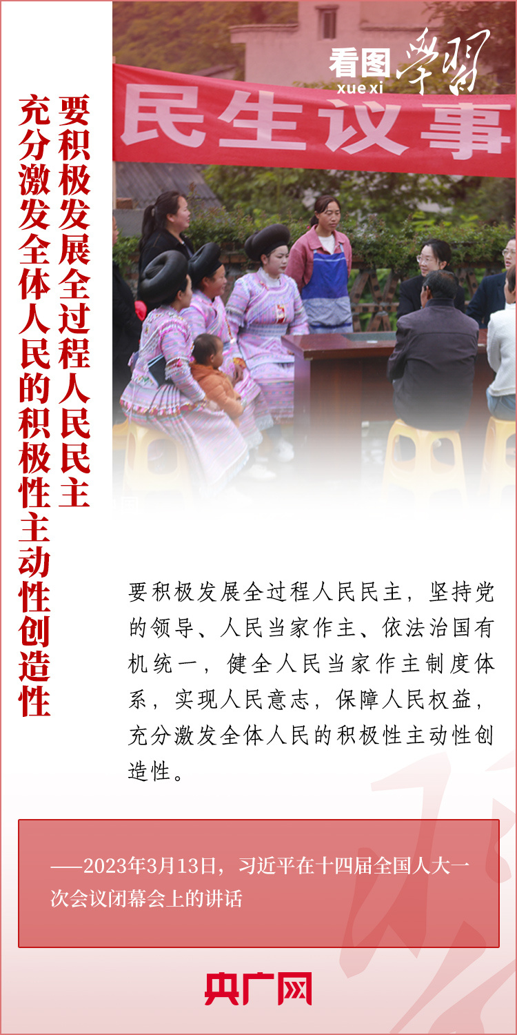 圍繞黨的二十屆三中全會明確提出的“七個聚焦”改革方向,《看圖學習》“改革為人民”系列為您梳理總書記相關重要論述。本期推出“聚焦發(fā)展全過程人民民主”,一起來學習!