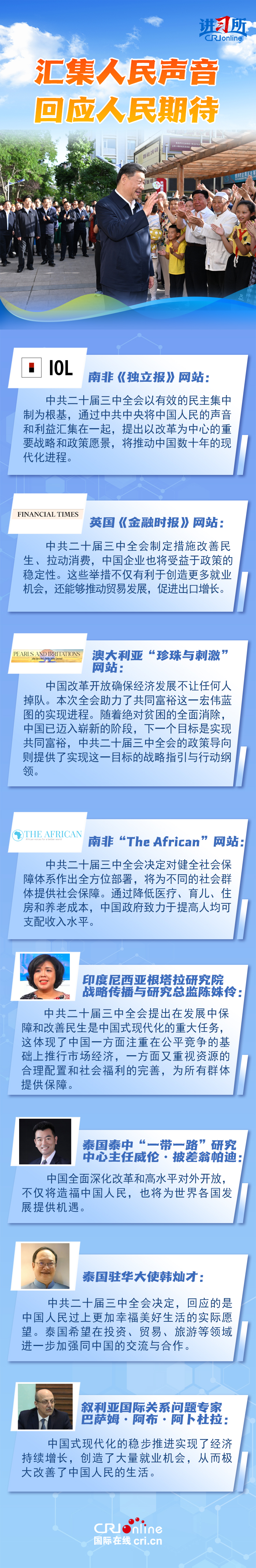 人民立場(chǎng)是中國(guó)共產(chǎn)黨的根本立場(chǎng),它向世界展現(xiàn)了中國(guó)以人民為中心推進(jìn)改革的堅(jiān)定決心和力量。國(guó)際社會(huì)認(rèn)為,中國(guó)這場(chǎng)全面深化改革,不僅將造福中國(guó)人民,也將為世界各國(guó)發(fā)展提供機(jī)遇。