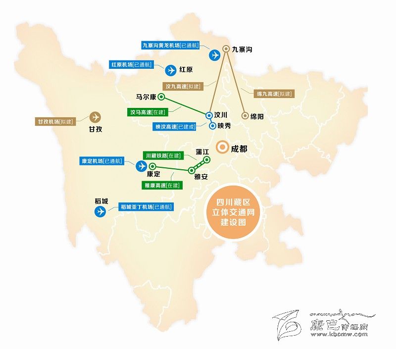 上月出臺的《四川省推進(jìn)實施長江經(jīng)濟帶綜合立體交通走廊規(guī)劃工作方案》中提出,我省將加快支線機場建設(shè),包括進(jìn)一步完善位于四川藏區(qū)的紅原機場配套設(shè)施,以及將在“十三五”期間,開工建設(shè)同樣位于藏區(qū)的甘孜機場。鐵路方面也有好消息,備受關(guān)注的川藏鐵路,除了剛剛?cè)€開工的蒲江至雅安段外,還將在明年上馬建設(shè)雅安至康定(新都橋)段。